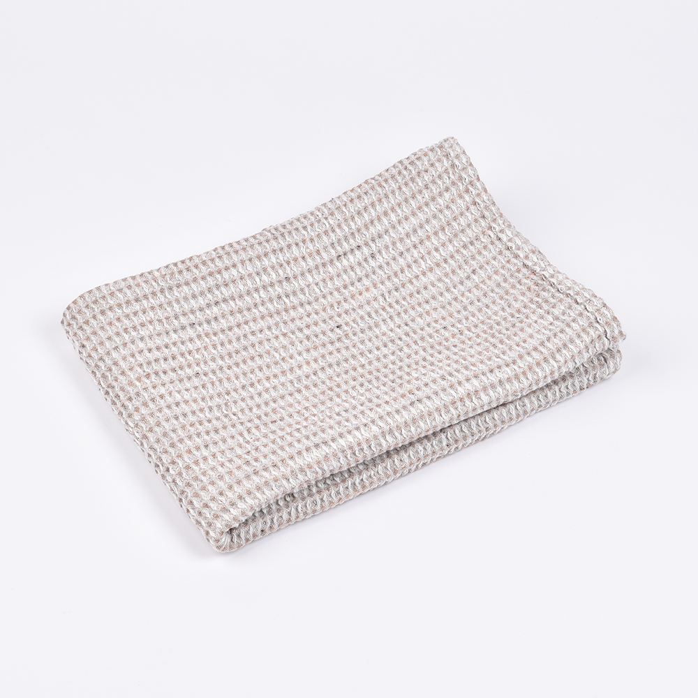 Bath towel and bath shower glove set. Waffle design set is sewn using recycled