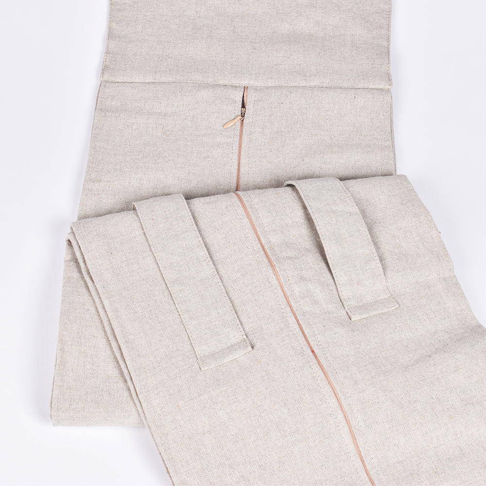 with recycled yarn, which is produced from the recycling cotton and linen scraps