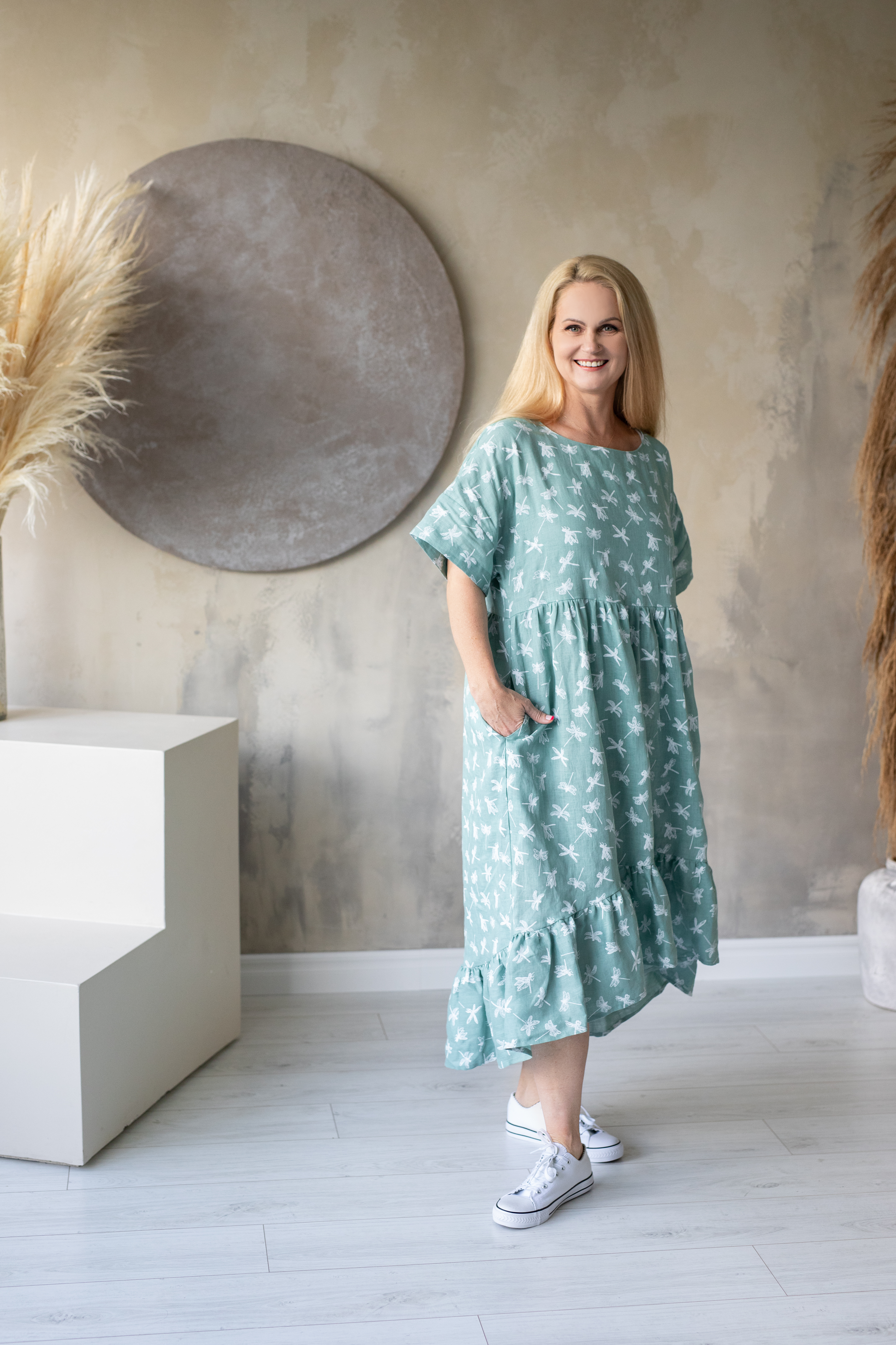 Linen dress Ema for elegant your everyday look, has short sleeves, comfortable