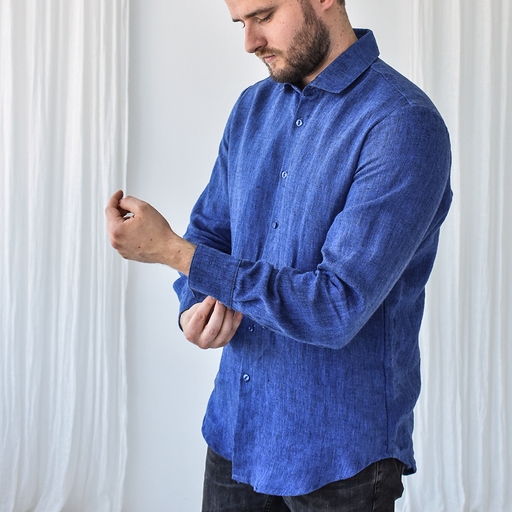 Lightweight, comfortable linen shirt with long sleeves, button fastening, classic collar and one button cuff perfect for smart and casual outfits.