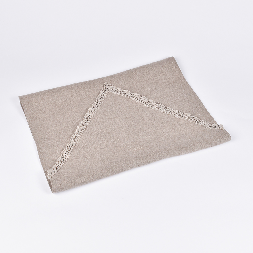 Natural colour pure linen runner with lace LINAS CLASSIC, 42X120 cm