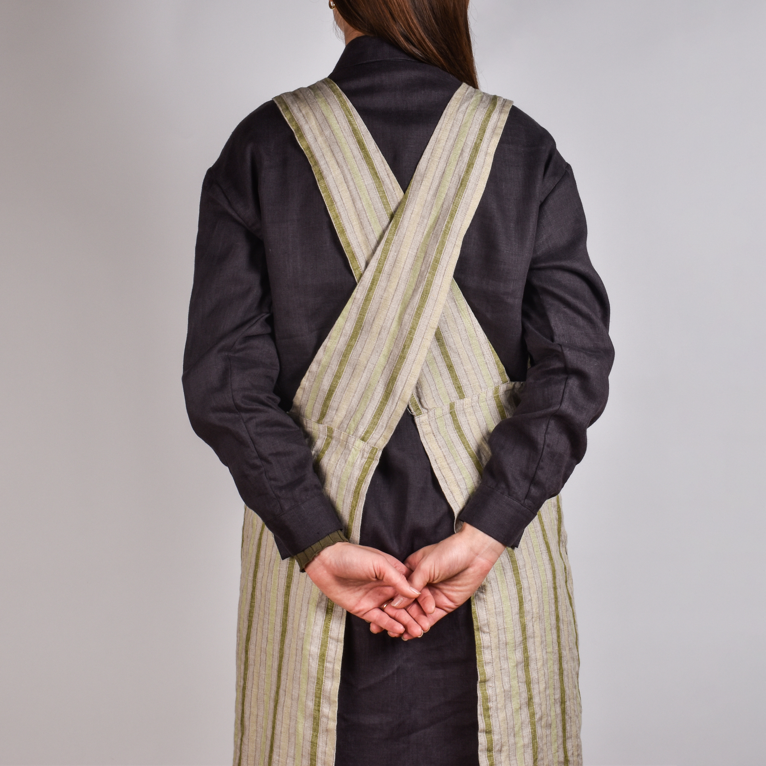 Exclusively designed, comfortable and versatile linen apron is perfect for every cook. This apron has a cross back, making it easy to put on and take off quickly.