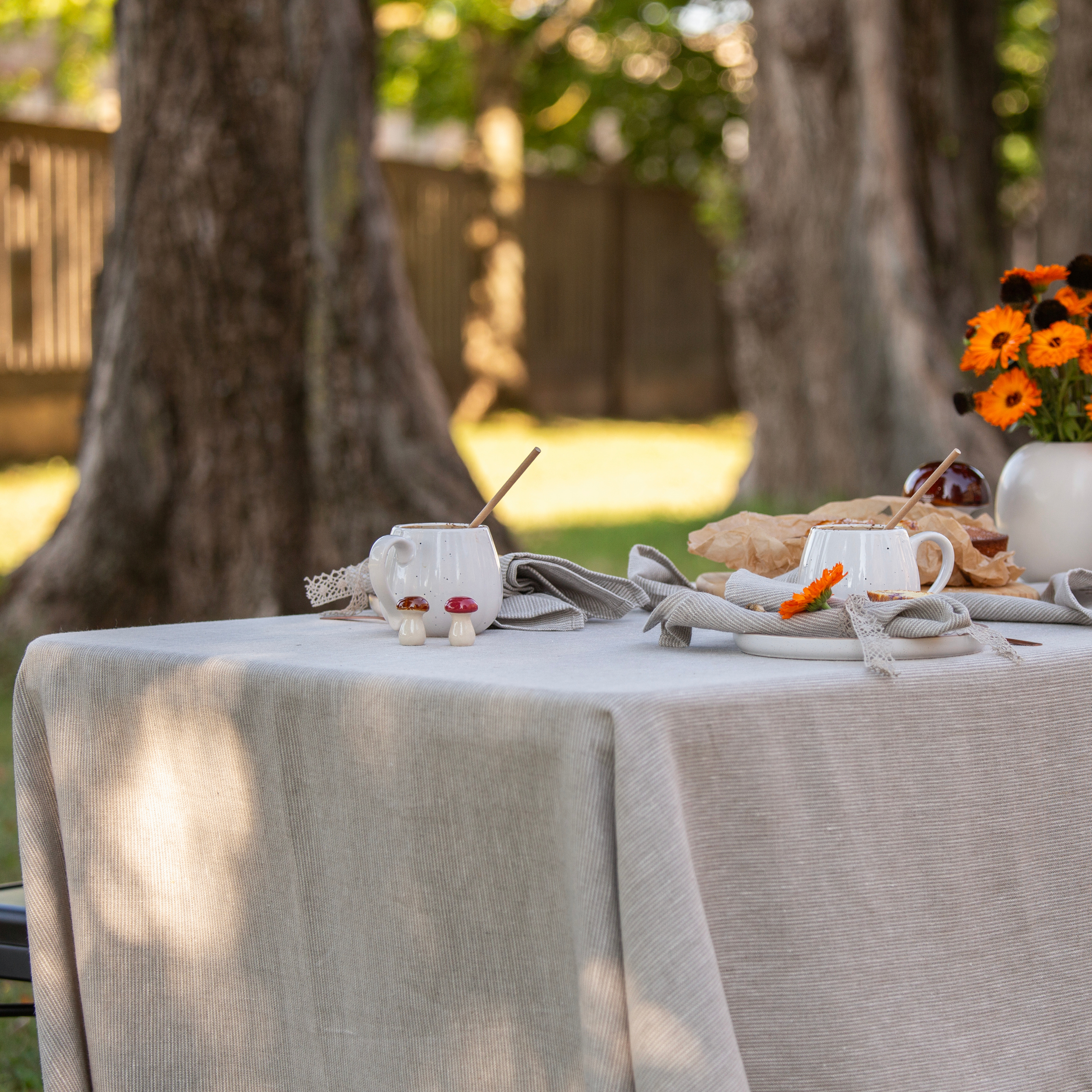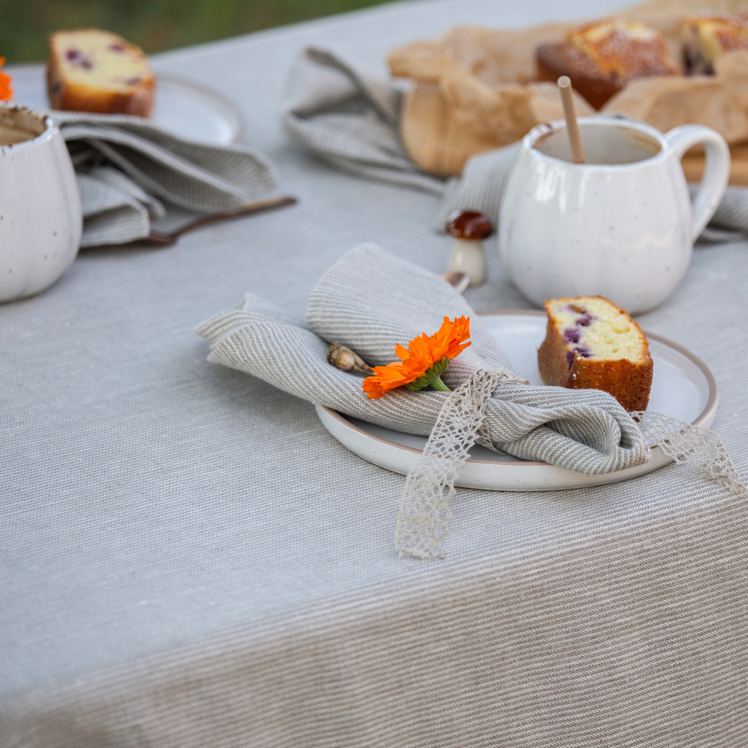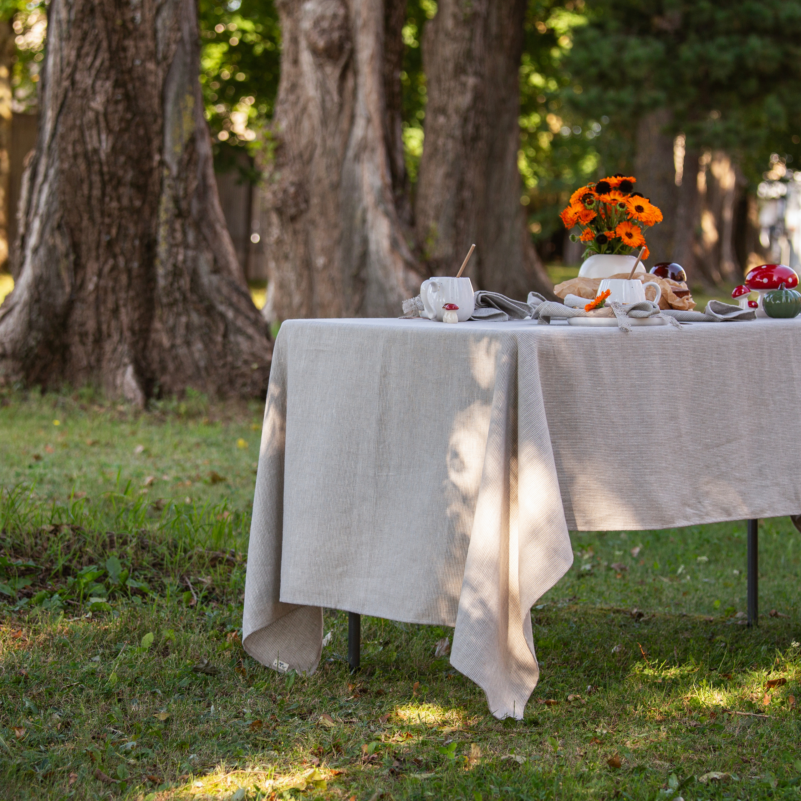 Fine lined, washed linen tablecloth. Whether you are celebrating a family member's birthday or want to gather with your family for a Sunday dinner, do not forget to cover your table with a tablecloth, which is not only an important decorative element when setting up the table, but also it helps to create cozy atmosphere in your room!