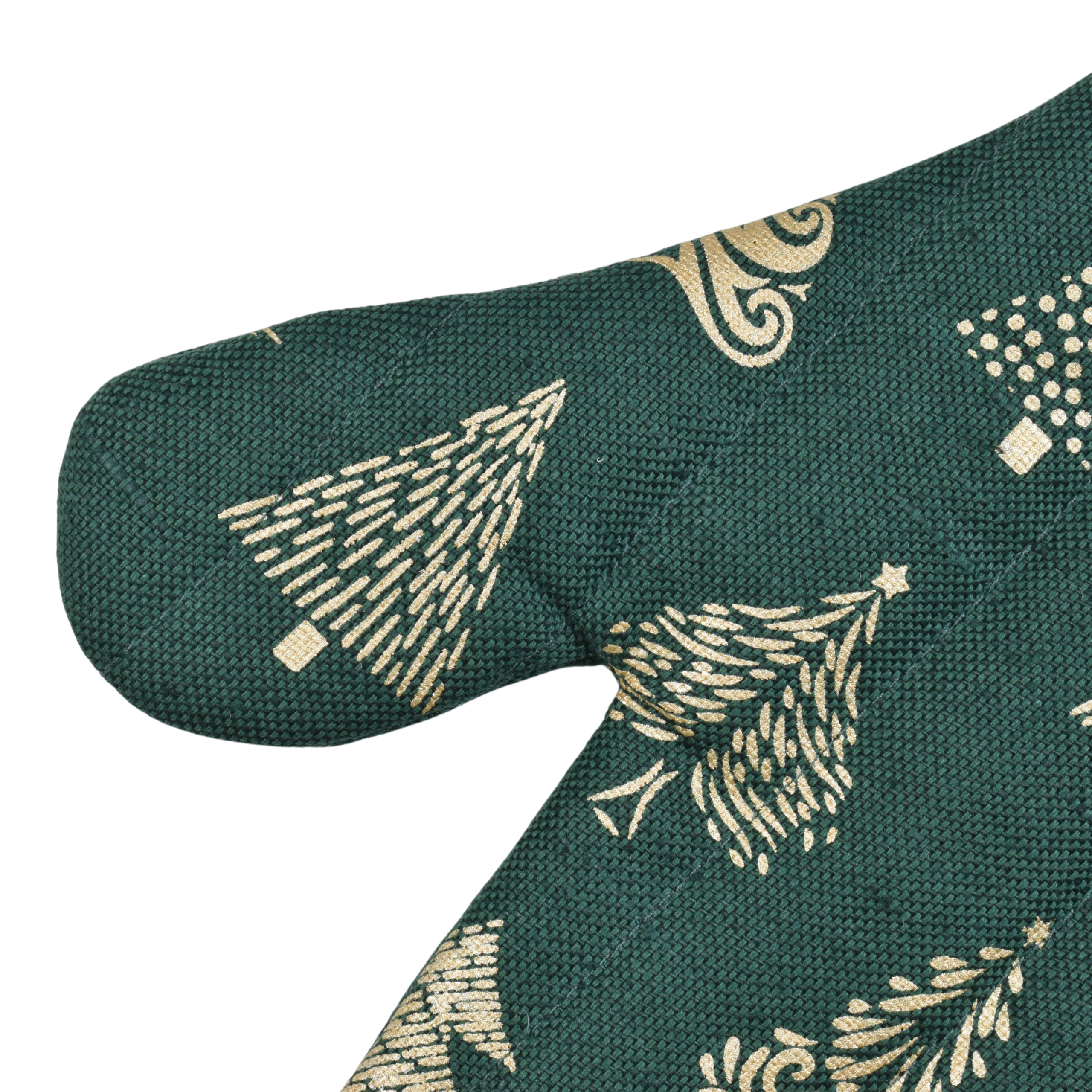 Standard size, suitable for men and women, mitten with Christmas trees print for the kitchen. With sewn-on loop and internal non-woven fabric making it suitable for handling hot dishes.