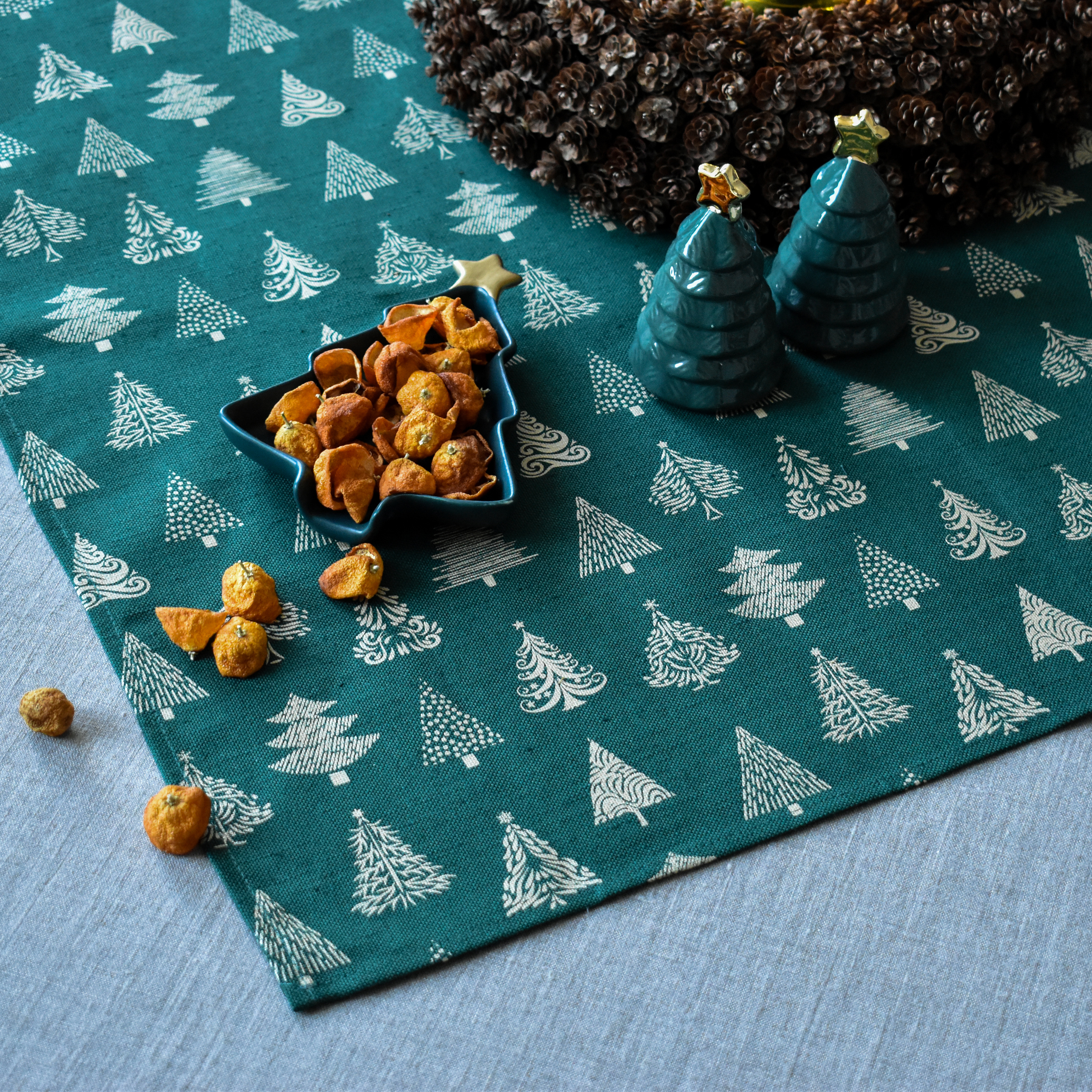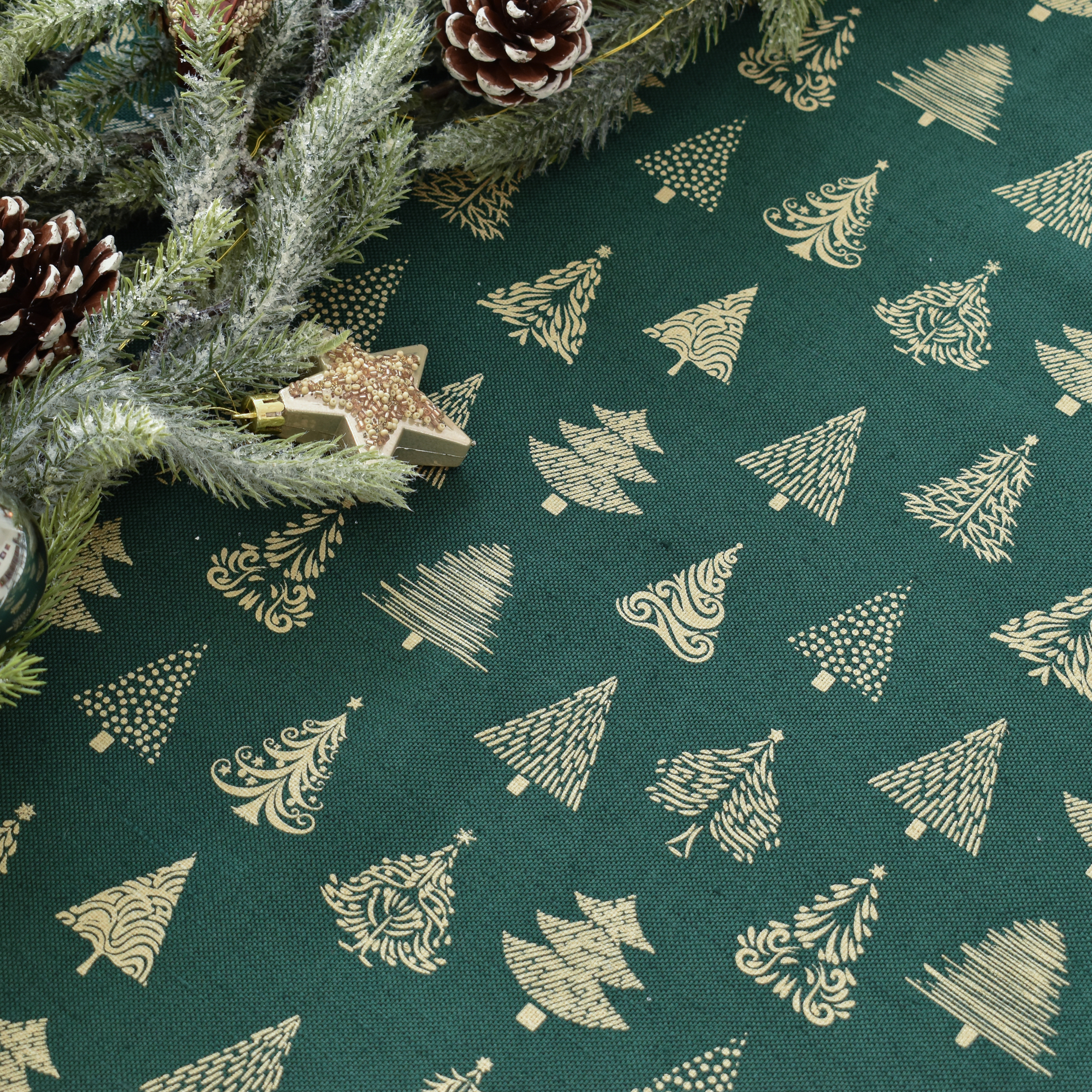 Small squere tablecloth with Christmas tree print in green colour, 72x72 cm