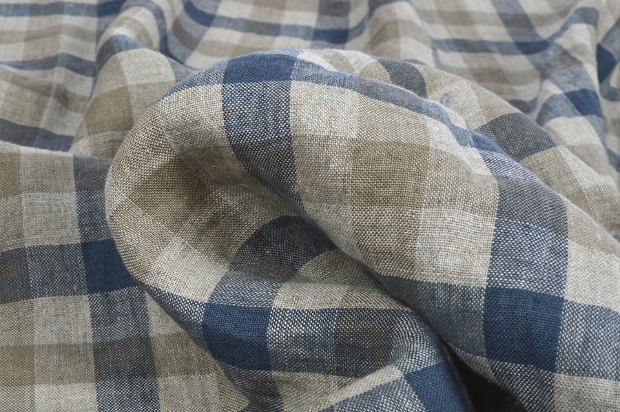 Washed linen fabric in checks, 205 g/m²