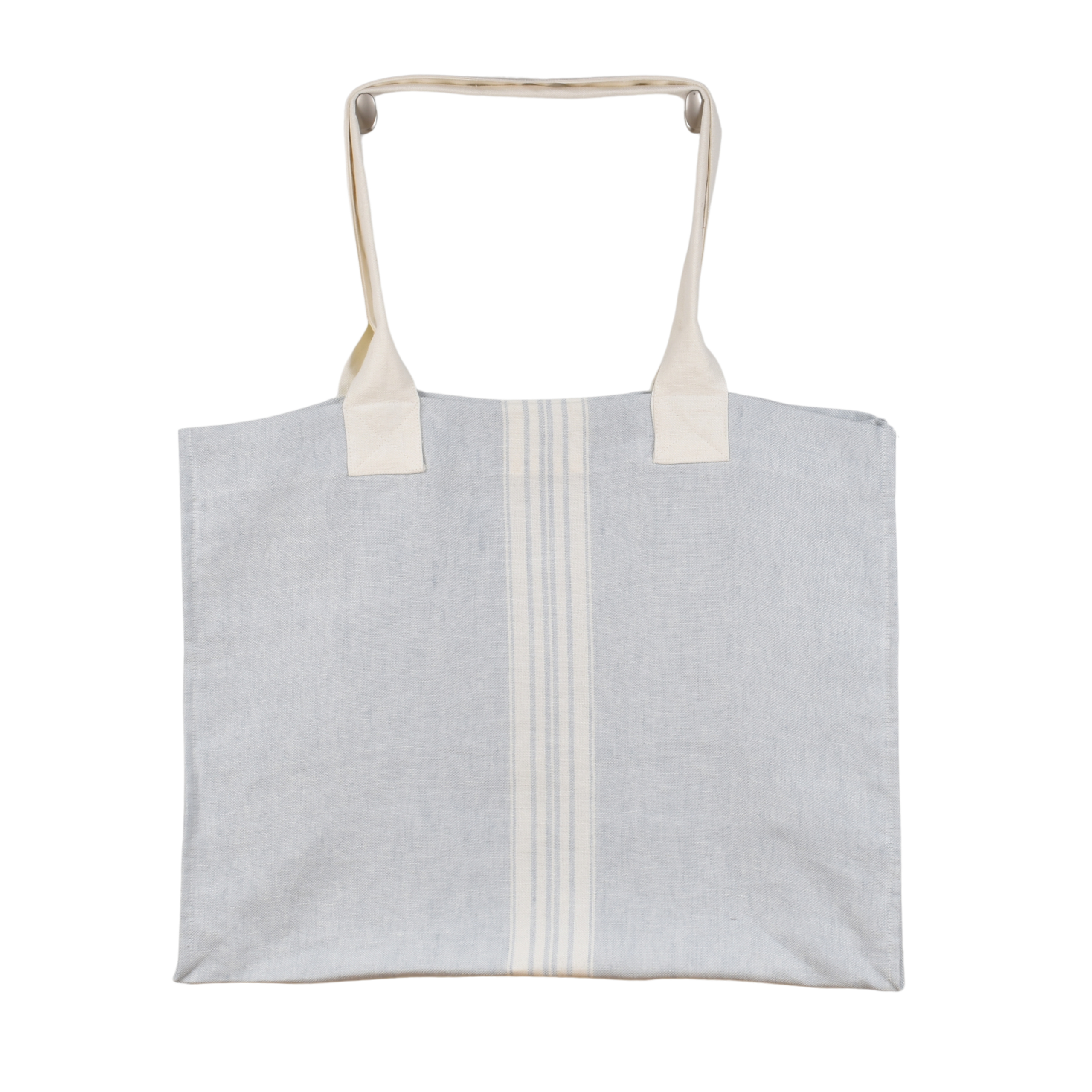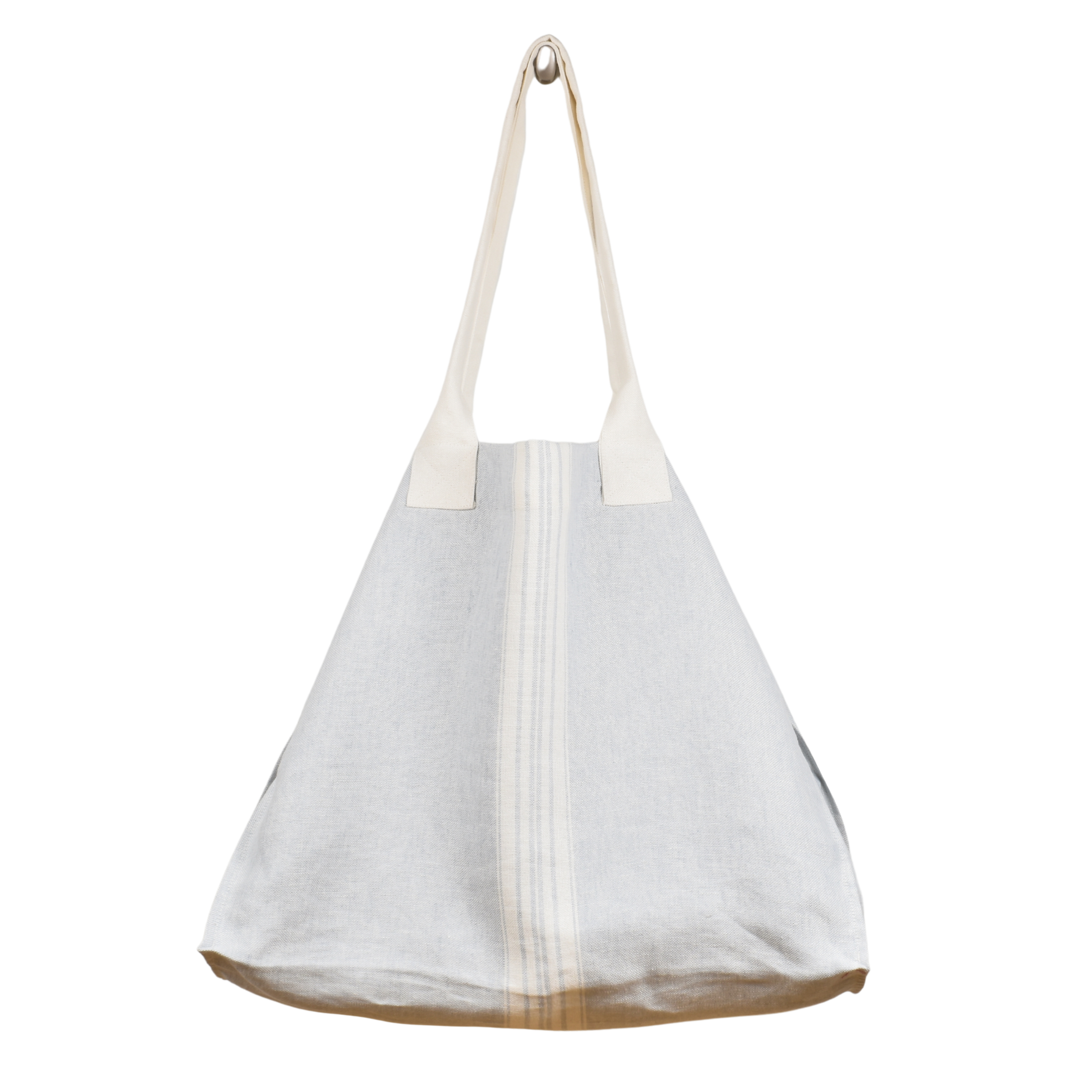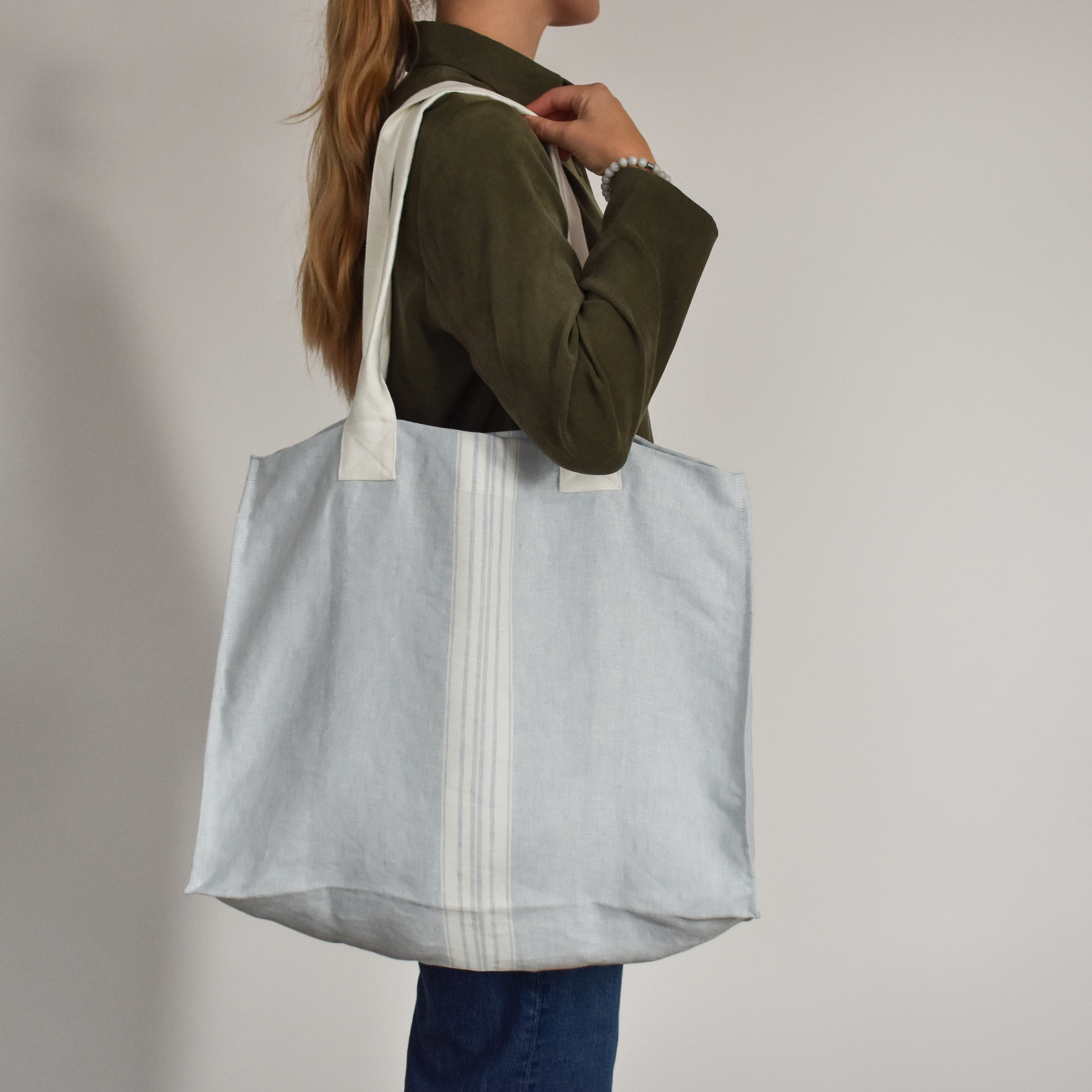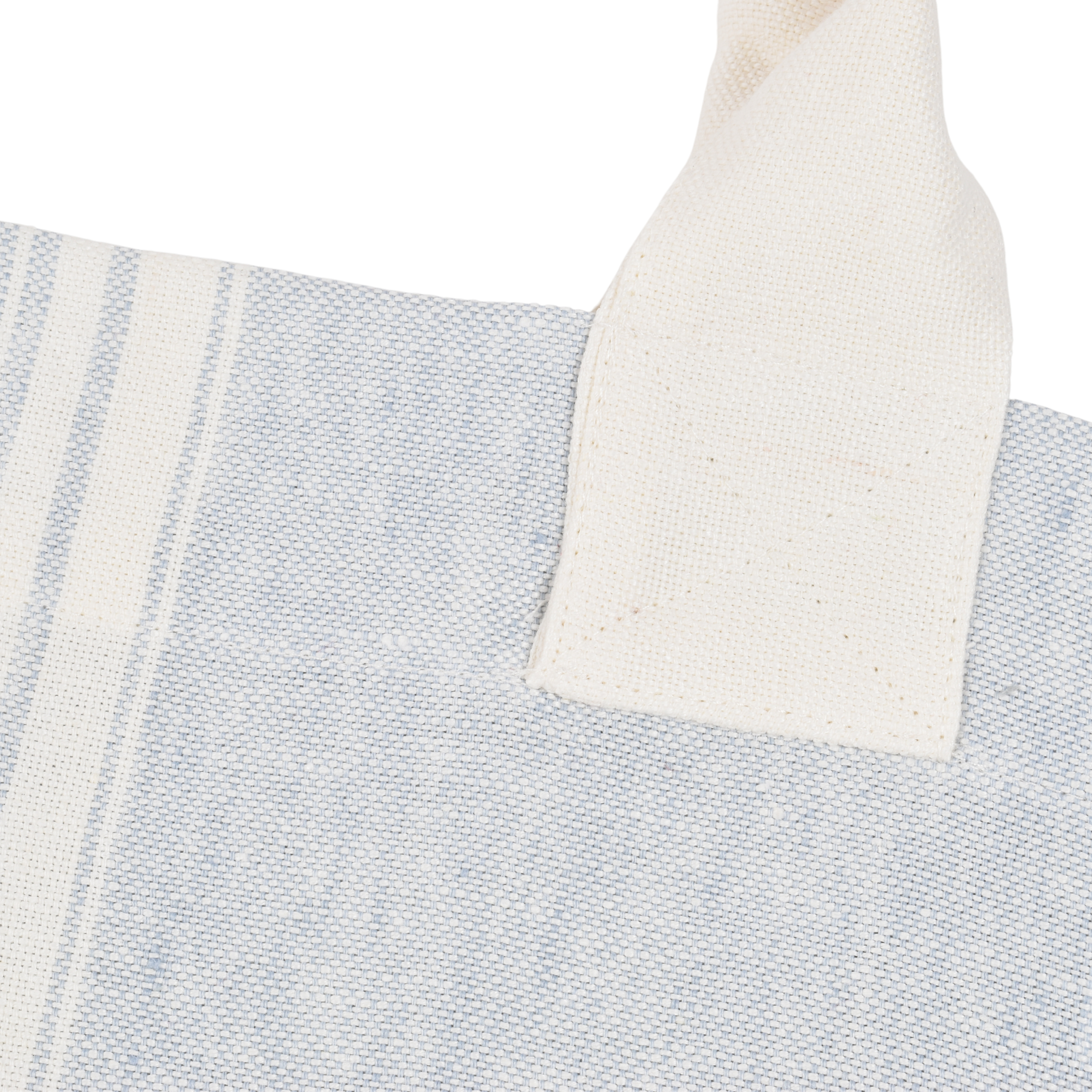 Lininis žydros spalvos sulankstomas pirkinių maišelis