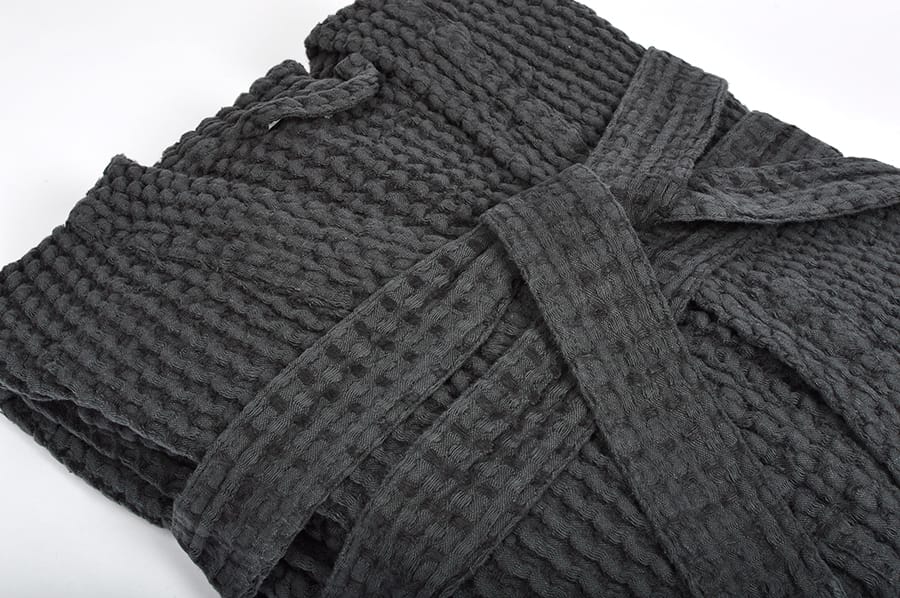 Vaflinio dizaino, sodriomis spalvomis dažyto lino chalatas, kokybiškas itin