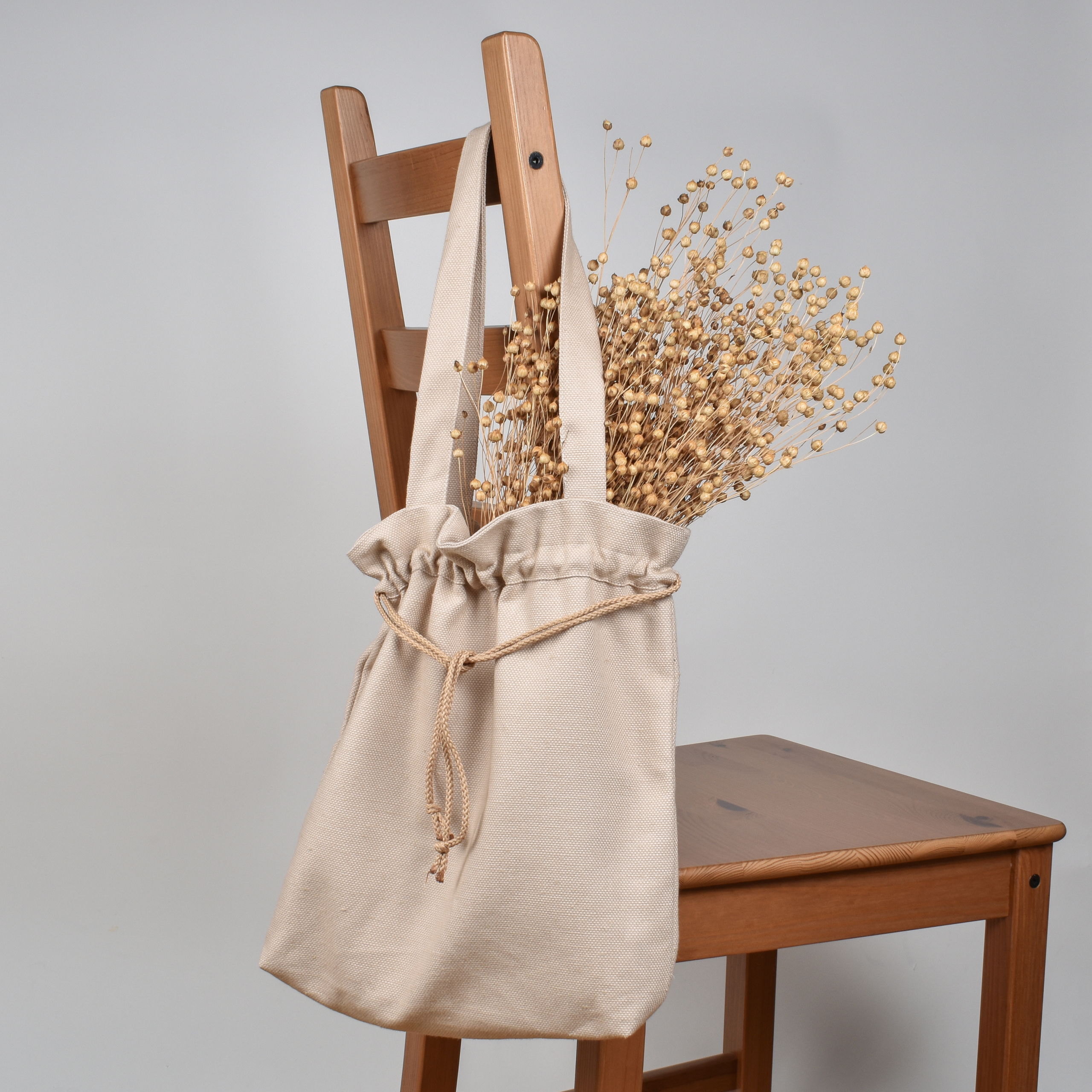 Lininis užtraukiamas smėlio spalvos maišelis (mažas)