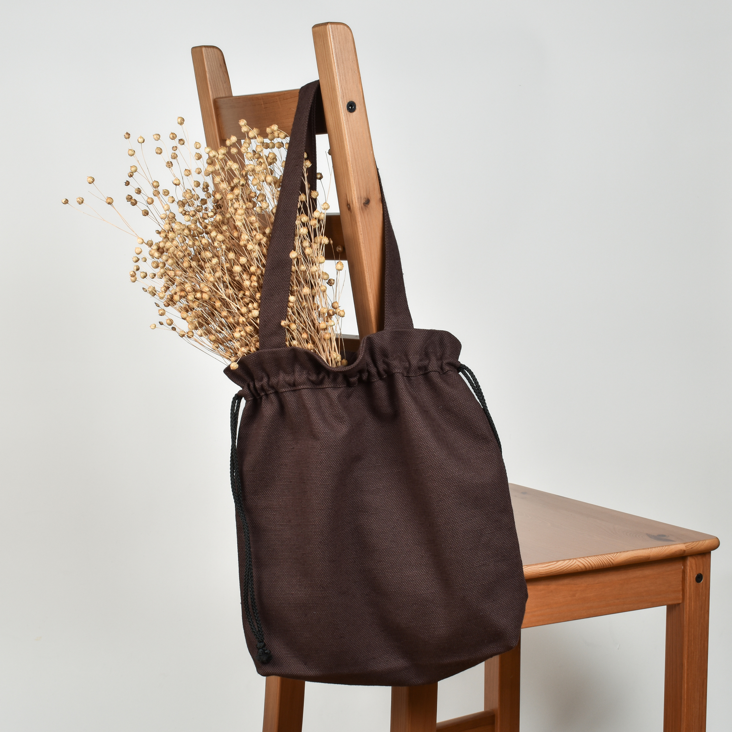 Lininis užtraukiamas rudos spalvos maišelis (mažas)