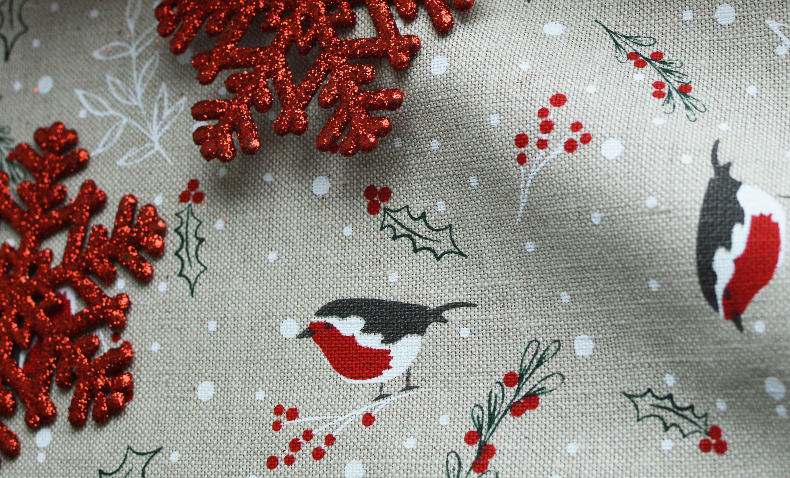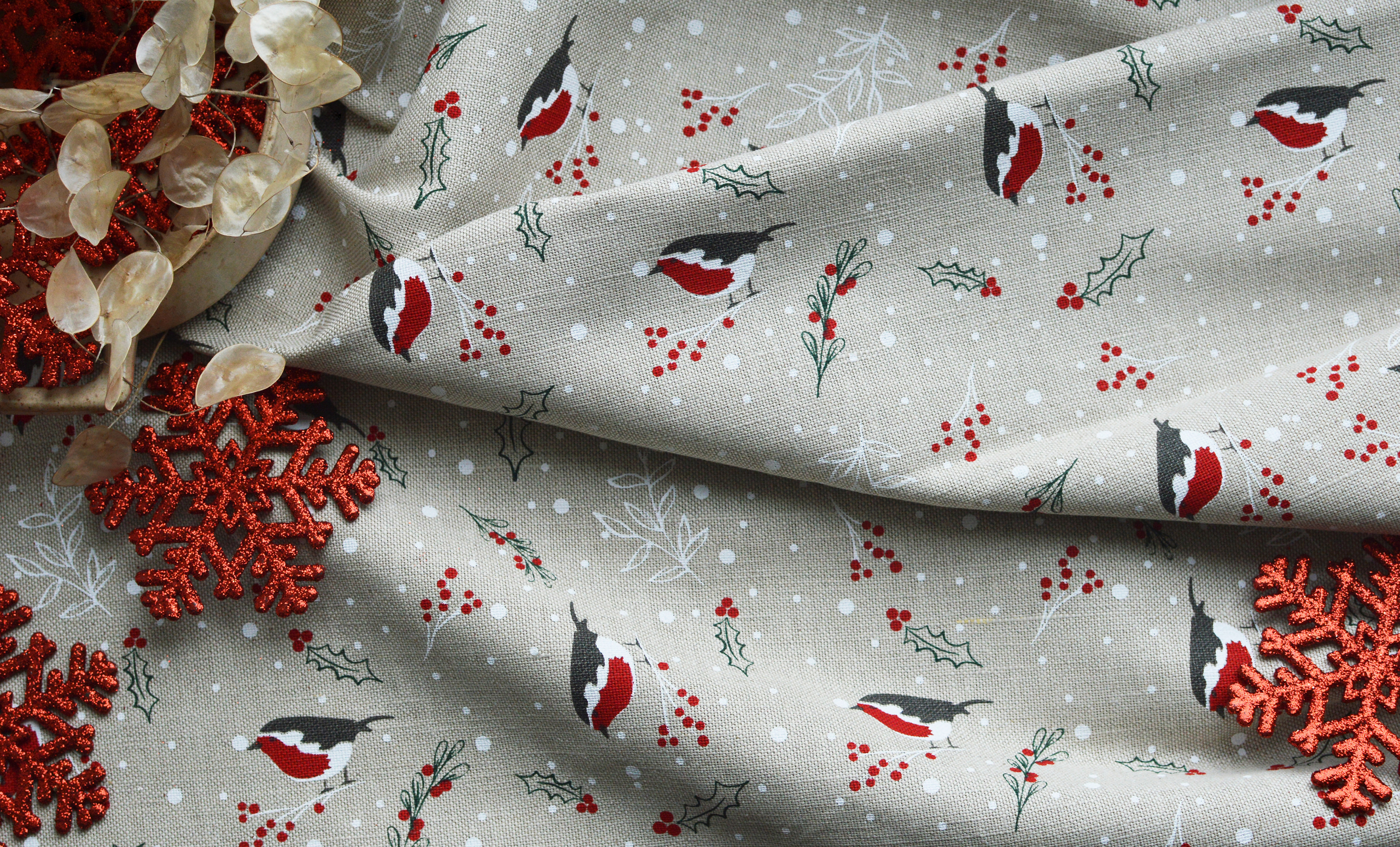 Margintas natūralios spalvos puslininis audinys Sniegenos, 240 g/m²