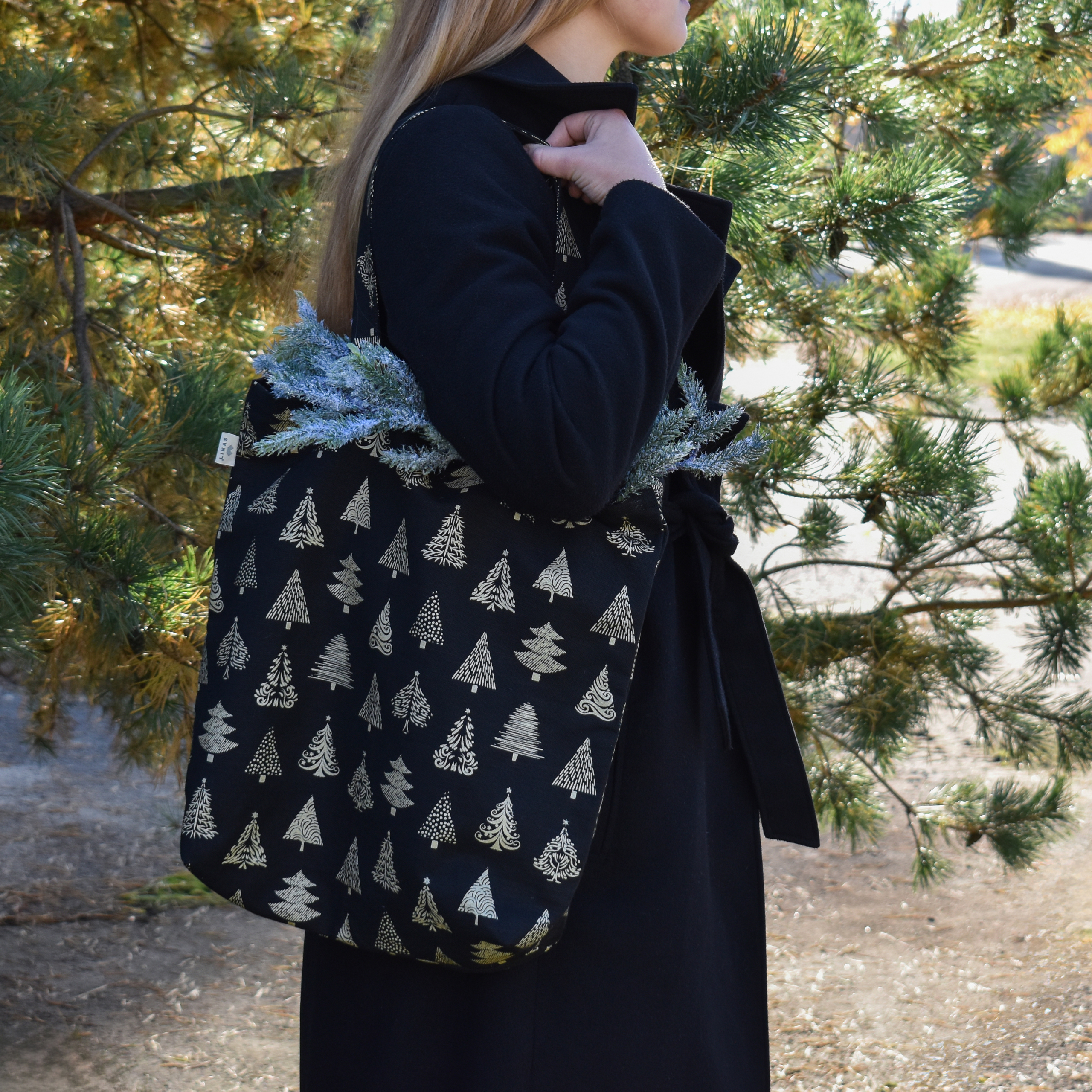 Shopping bag Christmas trees in black colour