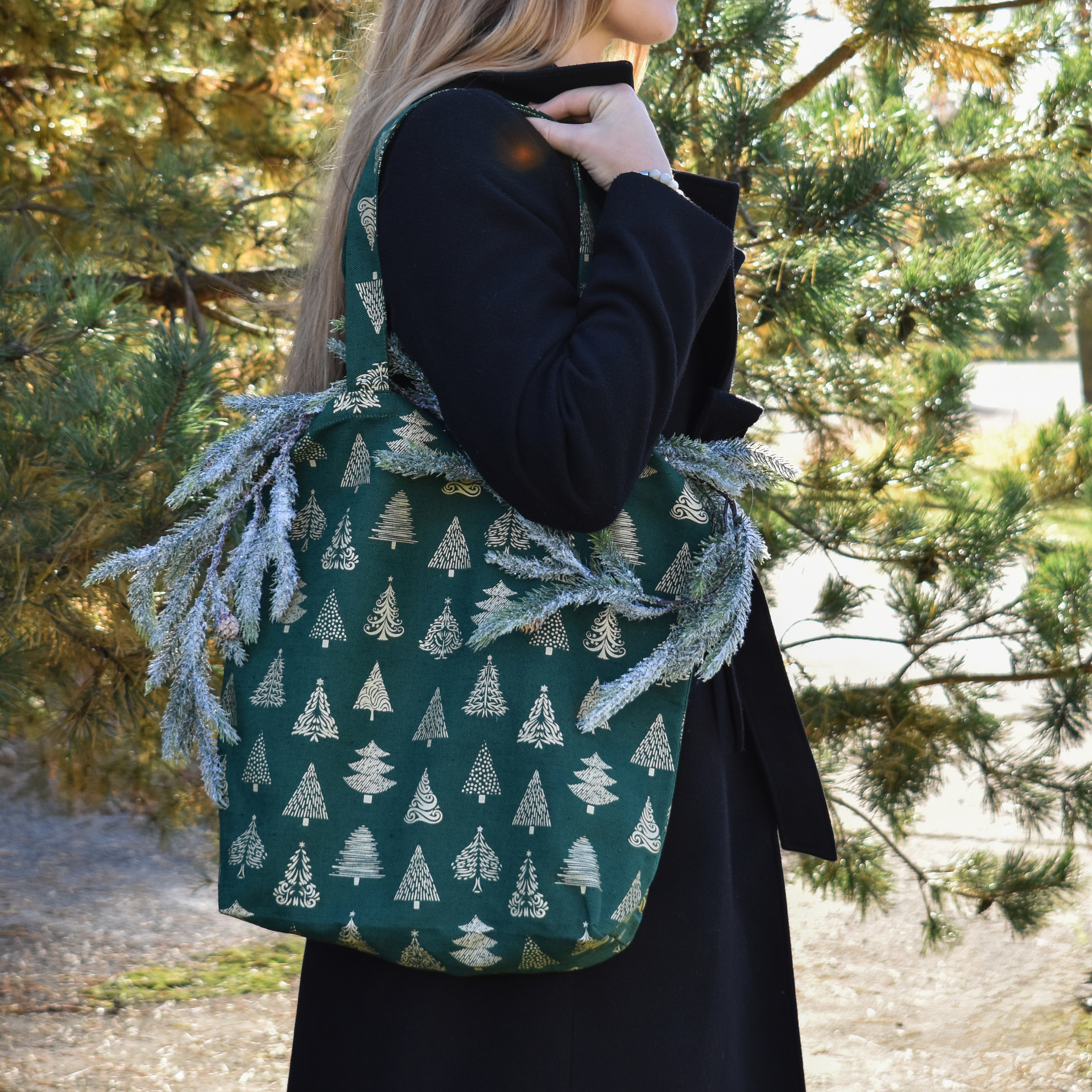 Shopping bag Christmas trees in green colour